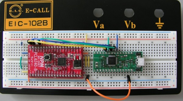 [SPI変換モジュール] と[PCL6240-B]はブレッドボード上で配線接続しています。