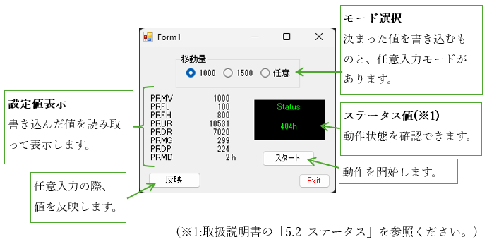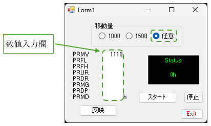 なお、PRMDには16進数で値を入力してください。数値入力後に、「反映」ボタンを押下することでレジスタに書き込まれます。