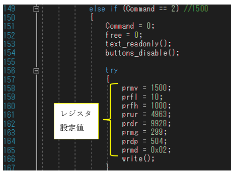 各レジスタ値は、「Form1.cs」の中に以下のように記述されています。